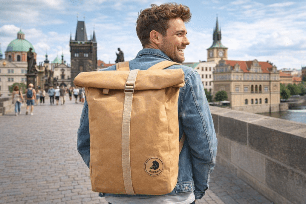 Ein nachhaltiger Rucksack aus Kraftpapier. Dafür steht Papero, ein junges Unternehmen aus Deutschland. Die Produktion findet aktuell noch in Asien statt, soll aber in Kürze nach Europa verlagert werden. Das robuste, wasserfeste Kraftpapier stammt aus FSC-zertifizierter Forstwirtschaft. Neben Rucksäcken/Rolltops sind auch alle anderen Produkte von Papero, wie zum Beispiel das Mini-Wallet, vegan. Für jede verkaufte Tasche geht ein Teil an Primaklima für Aufforstungsprojekte.